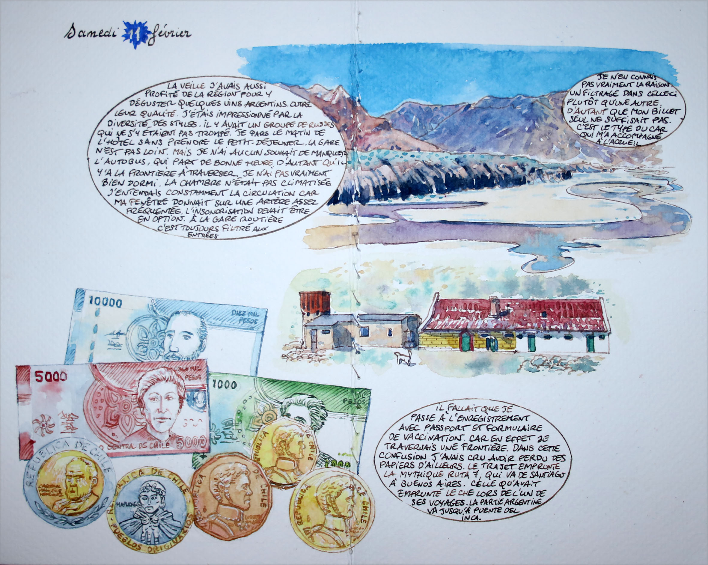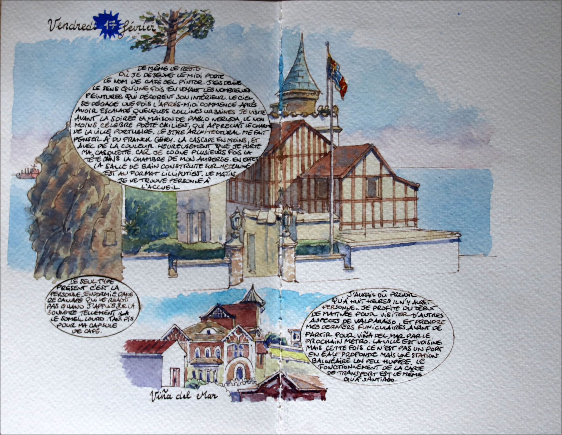 Watercolour paintings and travel diaries