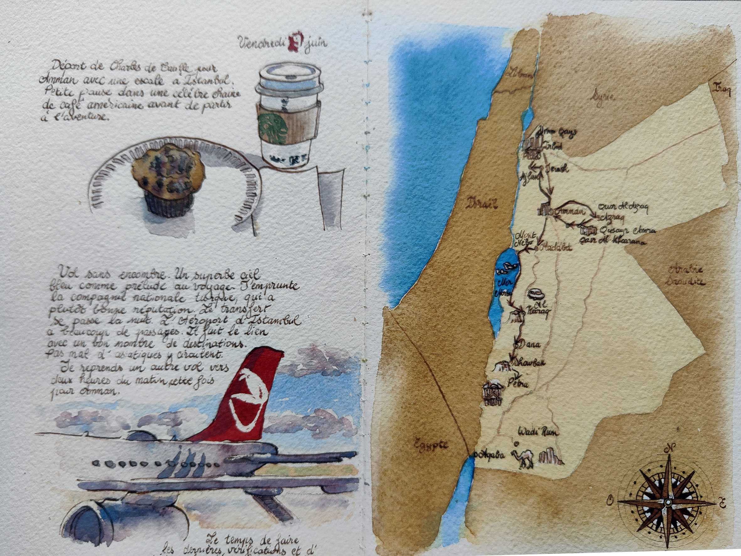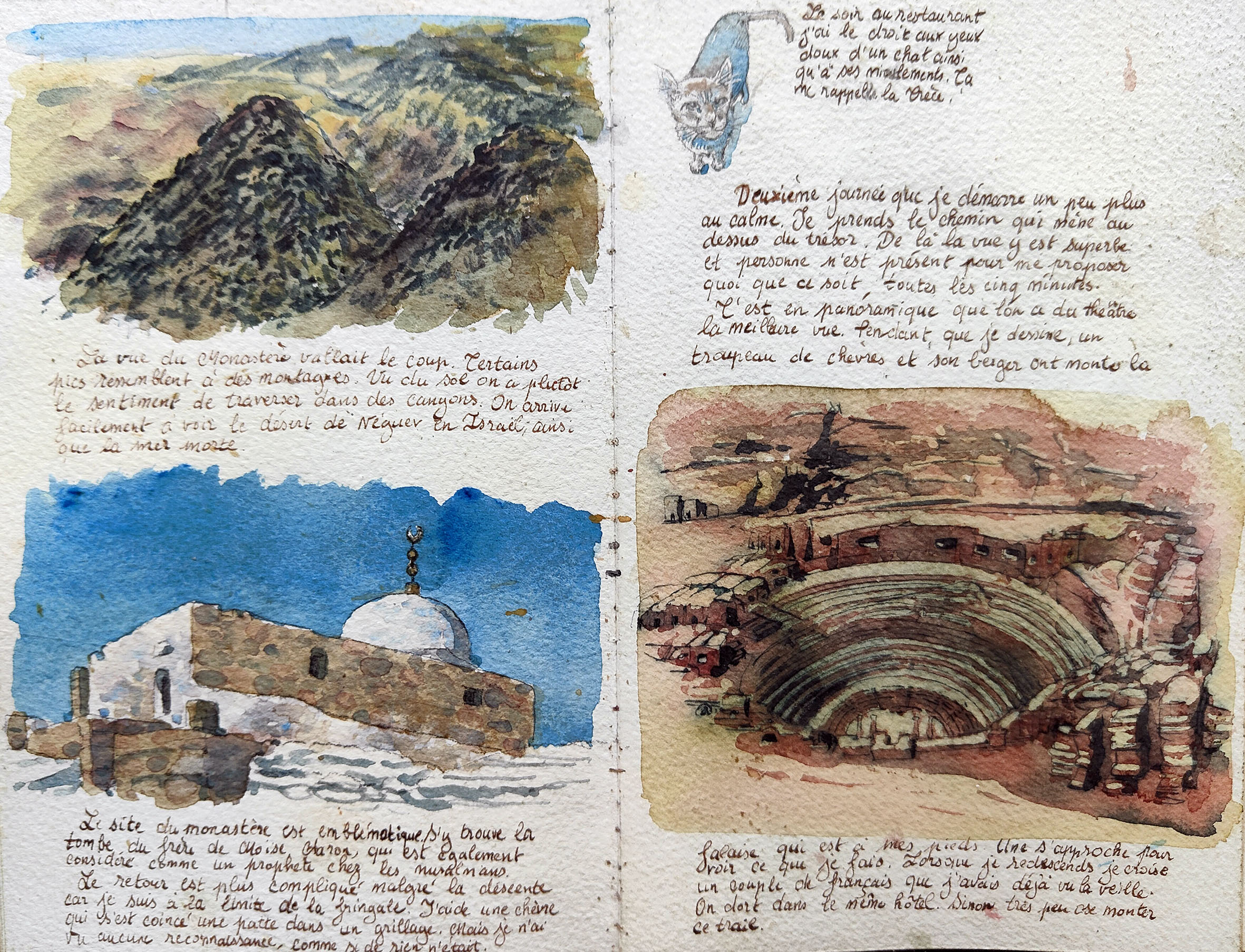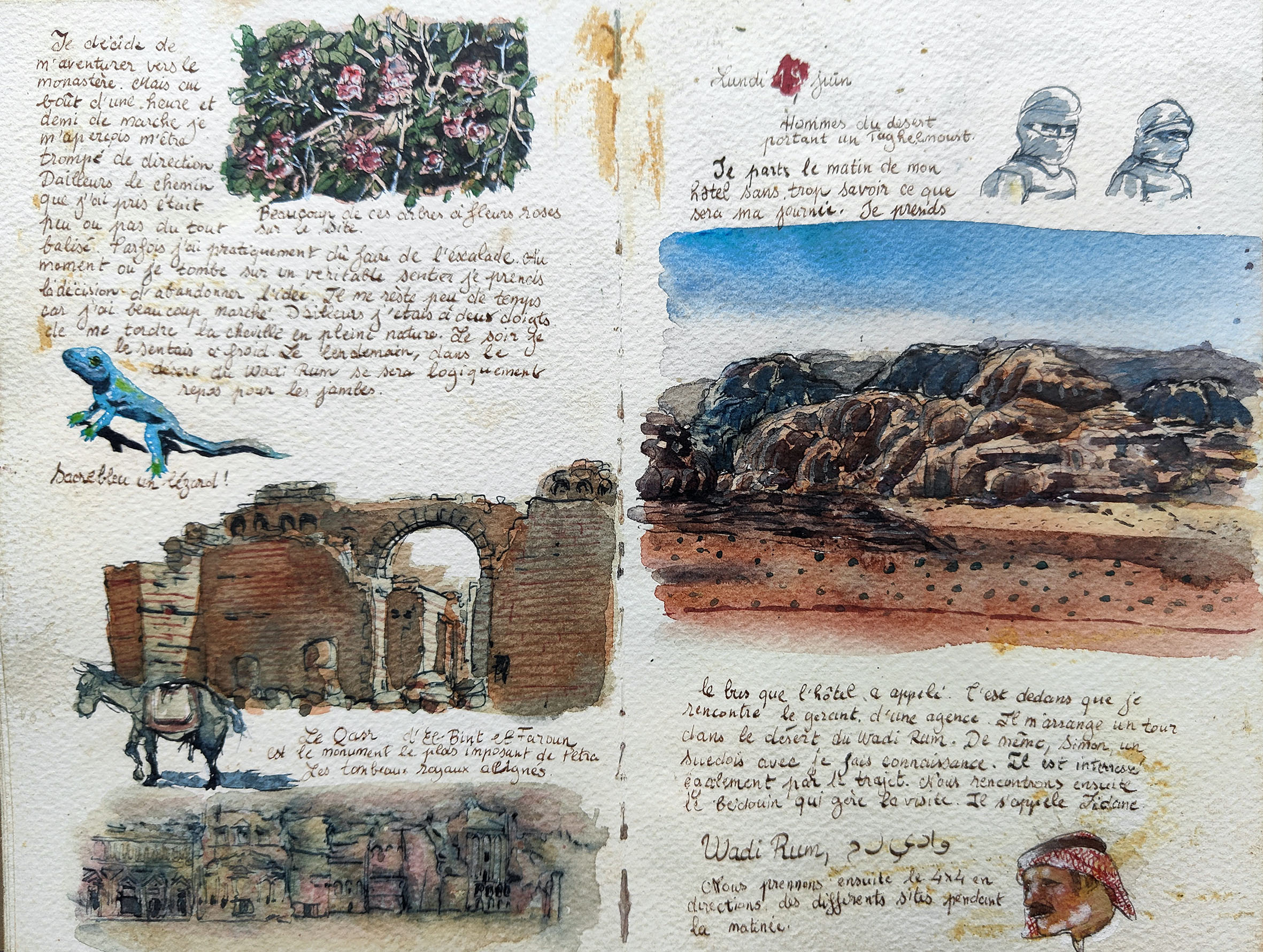 Watercolour paintings and travel diaries