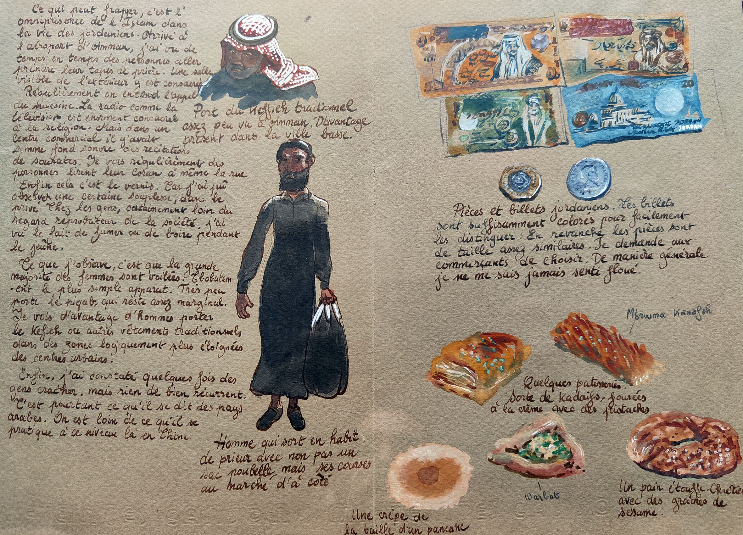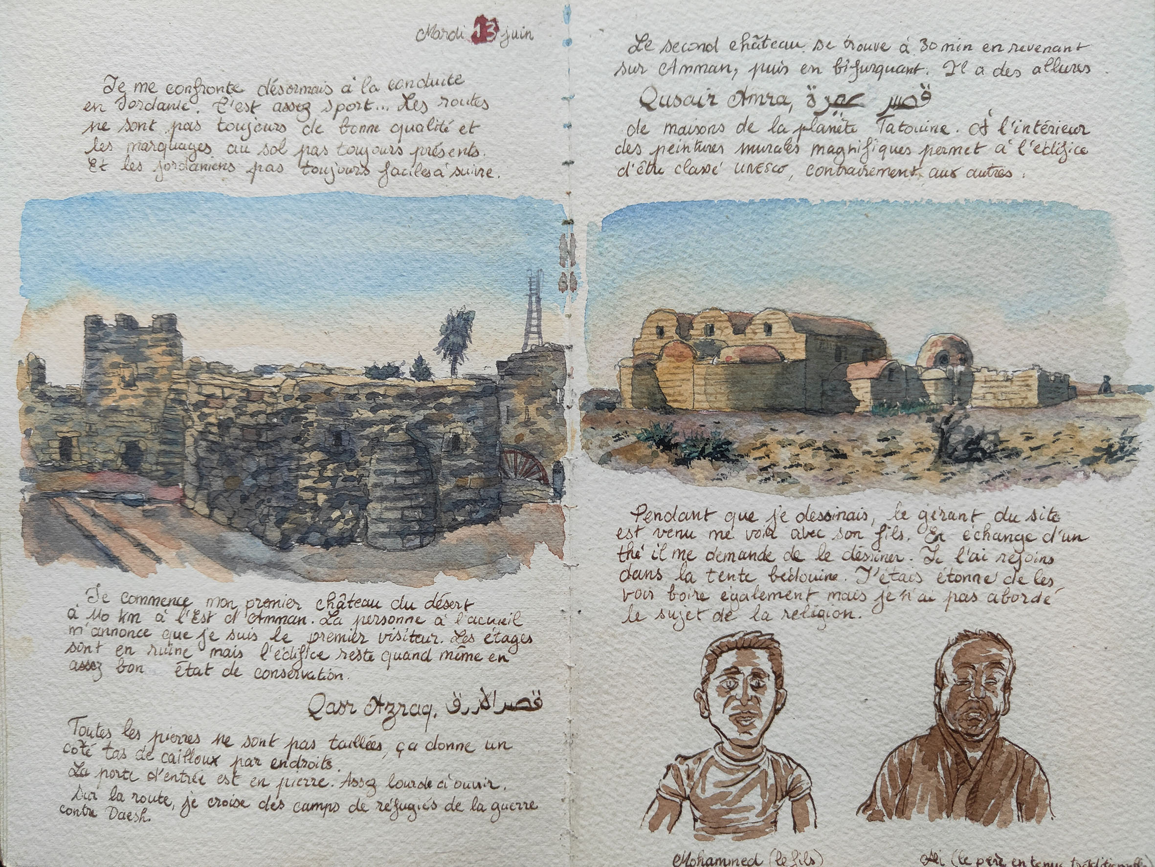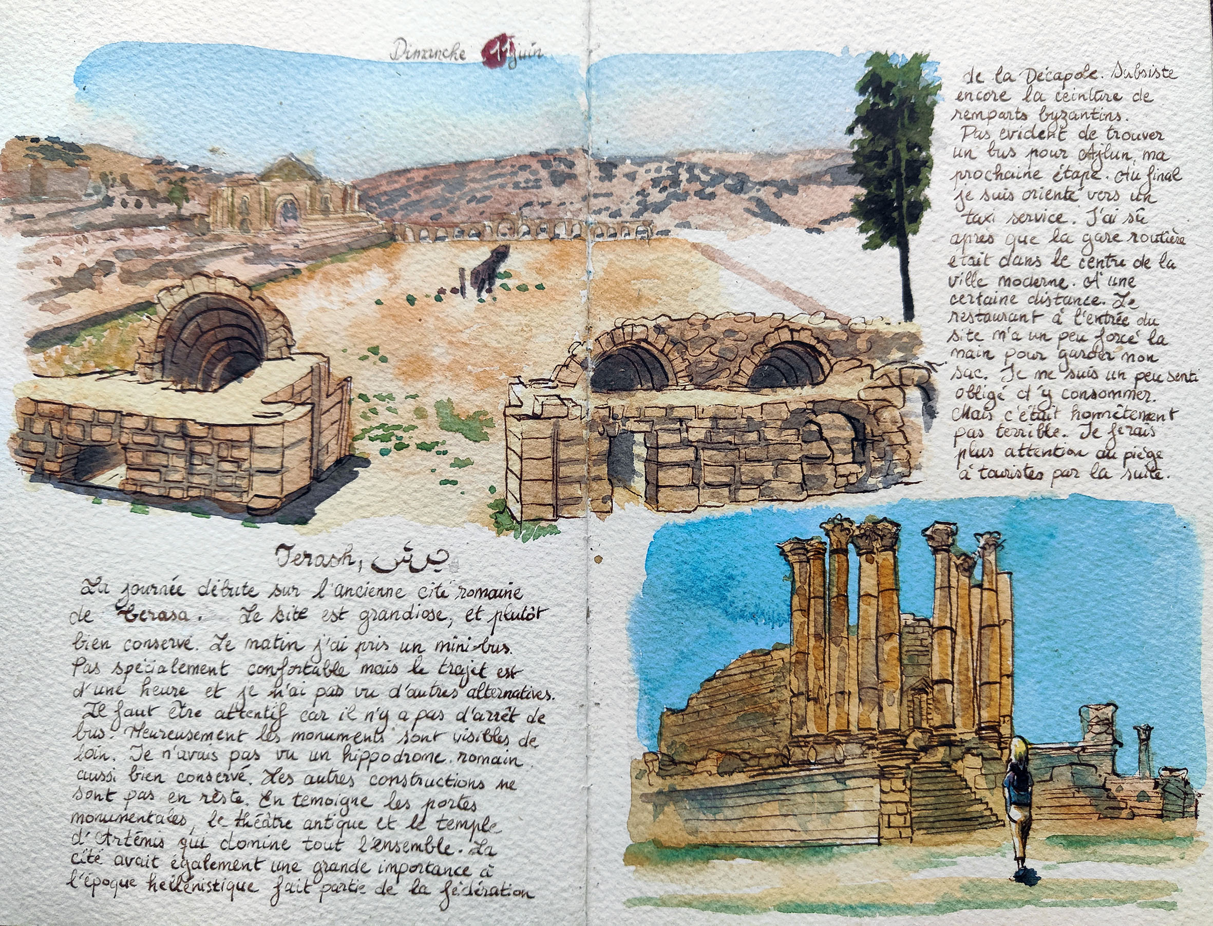 Watercolour paintings and travel diaries