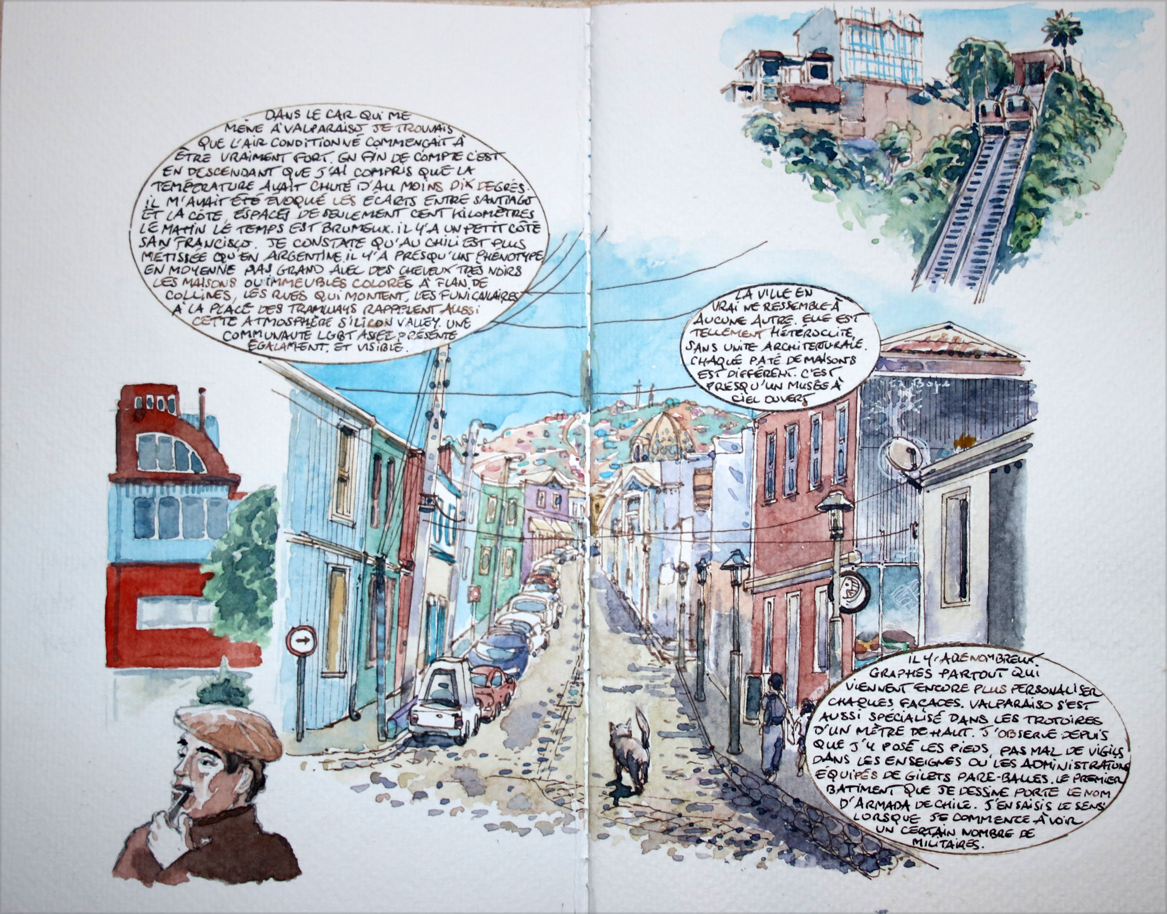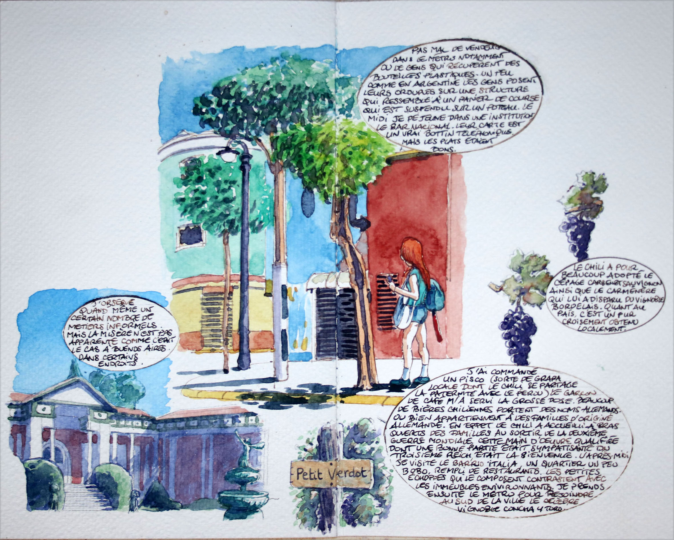 Watercolour paintings and travel diaries