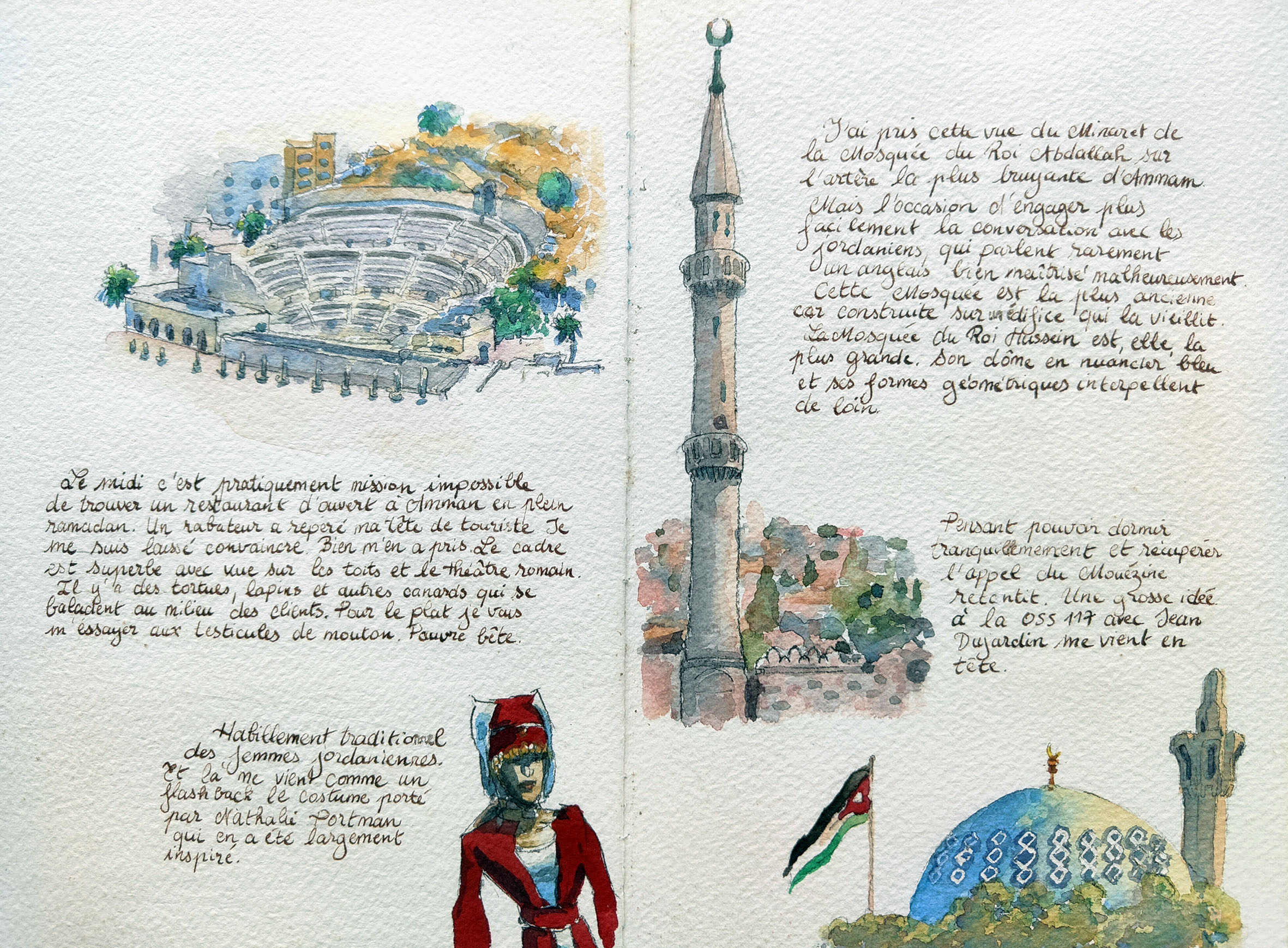 Watercolour paintings and travel diaries
