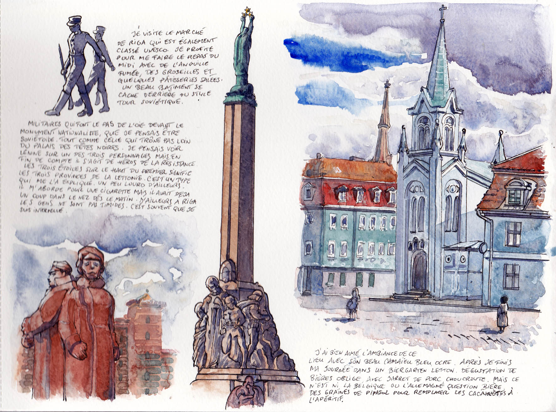 Watercolour paintings and travel diaries
