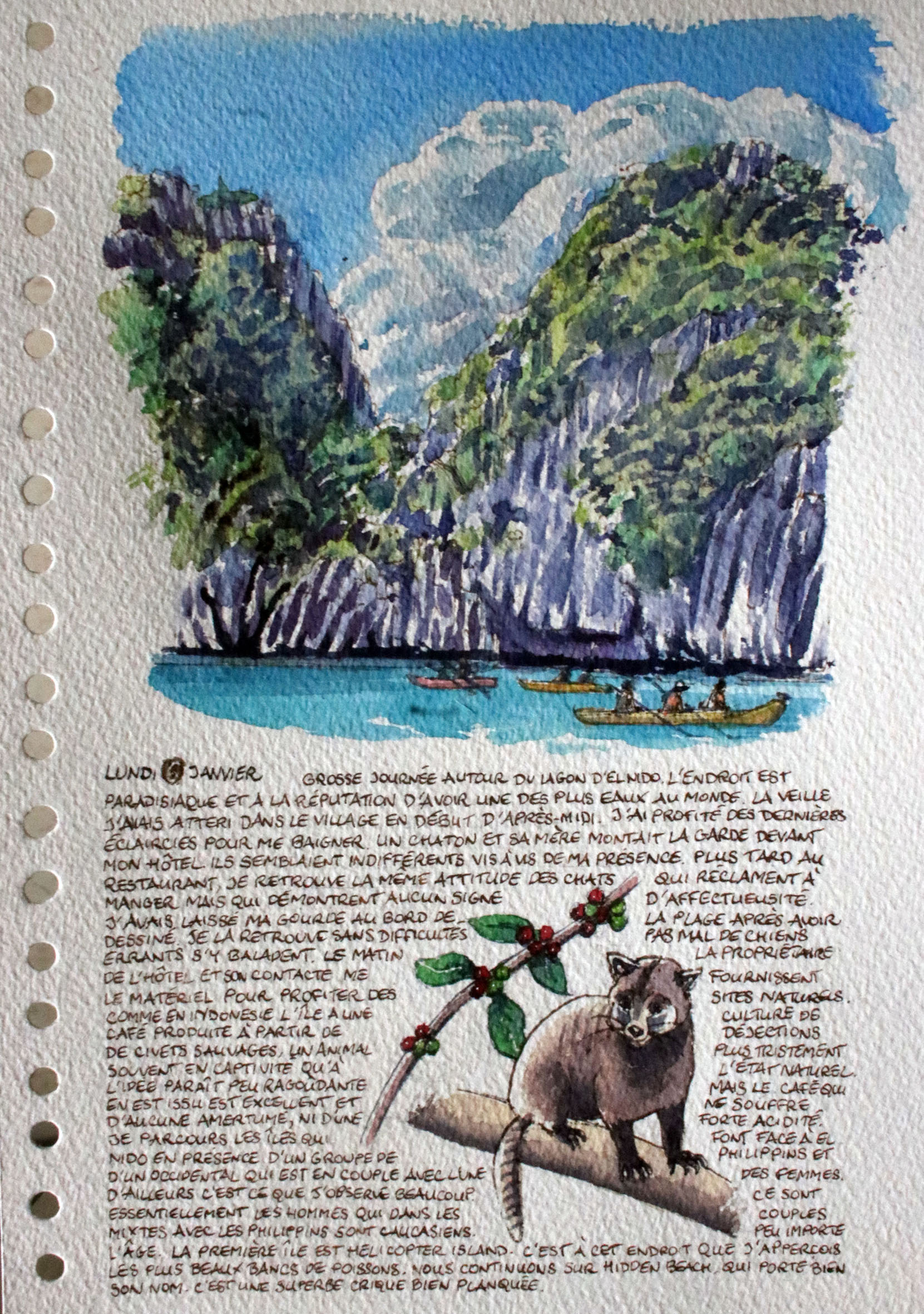 Watercolour paintings and travel diaries